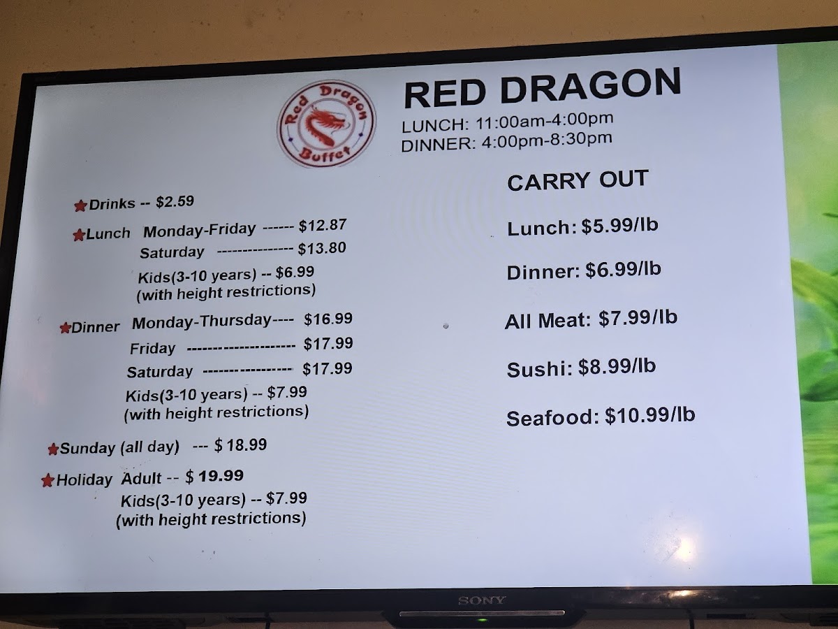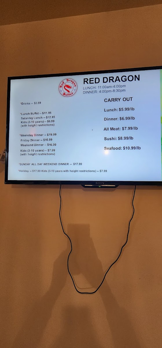 Red Dragon Buffet prides itself on cleanliness and attentive service, ensuring a welcoming atmosphere for families and friends alike. Don’t forget to save room for dessert, including their delightful ice cream. Experience the enticing flavors and inviting ambiance of Red Dragon Buffet.